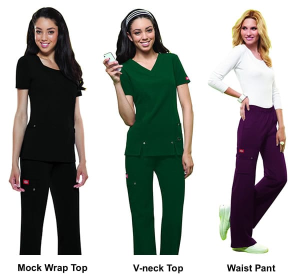 The Dickies Xtreme Stretch range includes: Mock Wrap Top, V-neck Top and Elastic Waist Pant! All 3 garments are available in 8 Colours; Black, Ceil, Hunter Green, Navy, Pewter, Royal Blue, Wine, Eggplant.