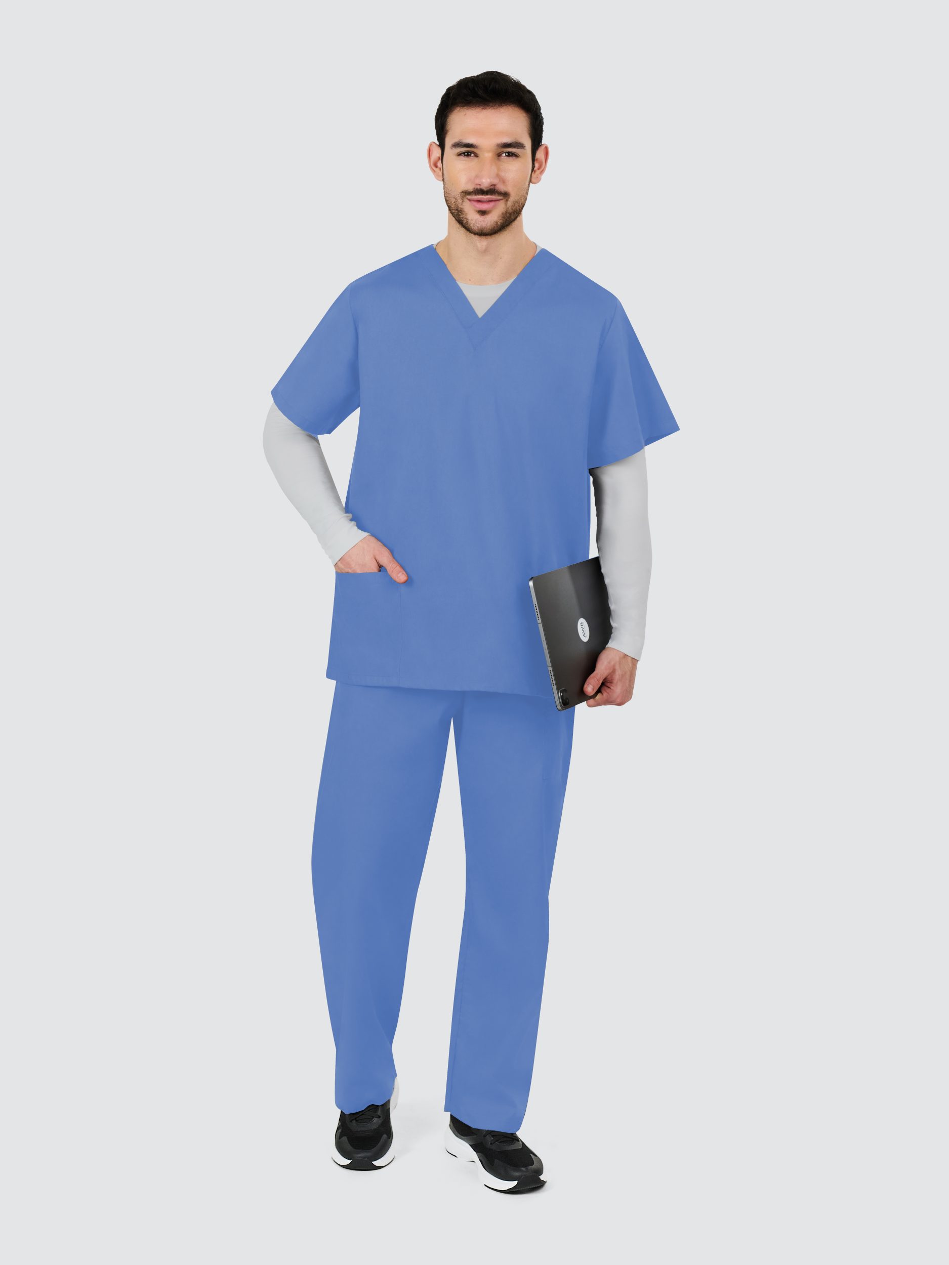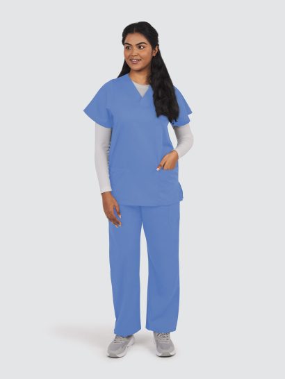 We have listened to our customers and they have been designed with the best of both worlds from our First Choice Eco range, equaling their lightweight mix of polyester and cotton, combined with similar design from our ever popular Galaxy range scrubs, making the trousers a combined elasticated tie band. The tops are a simple straightforward v neck style with double pockets.