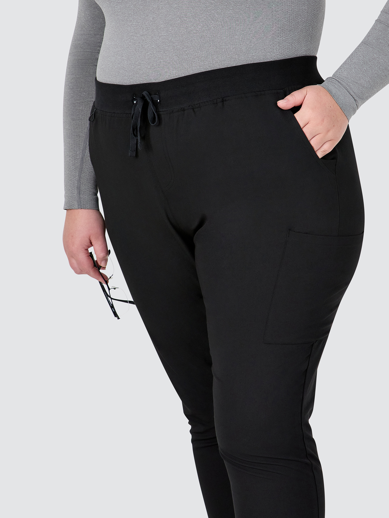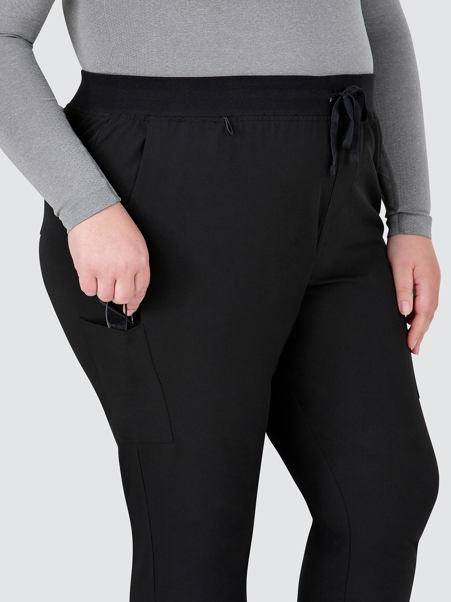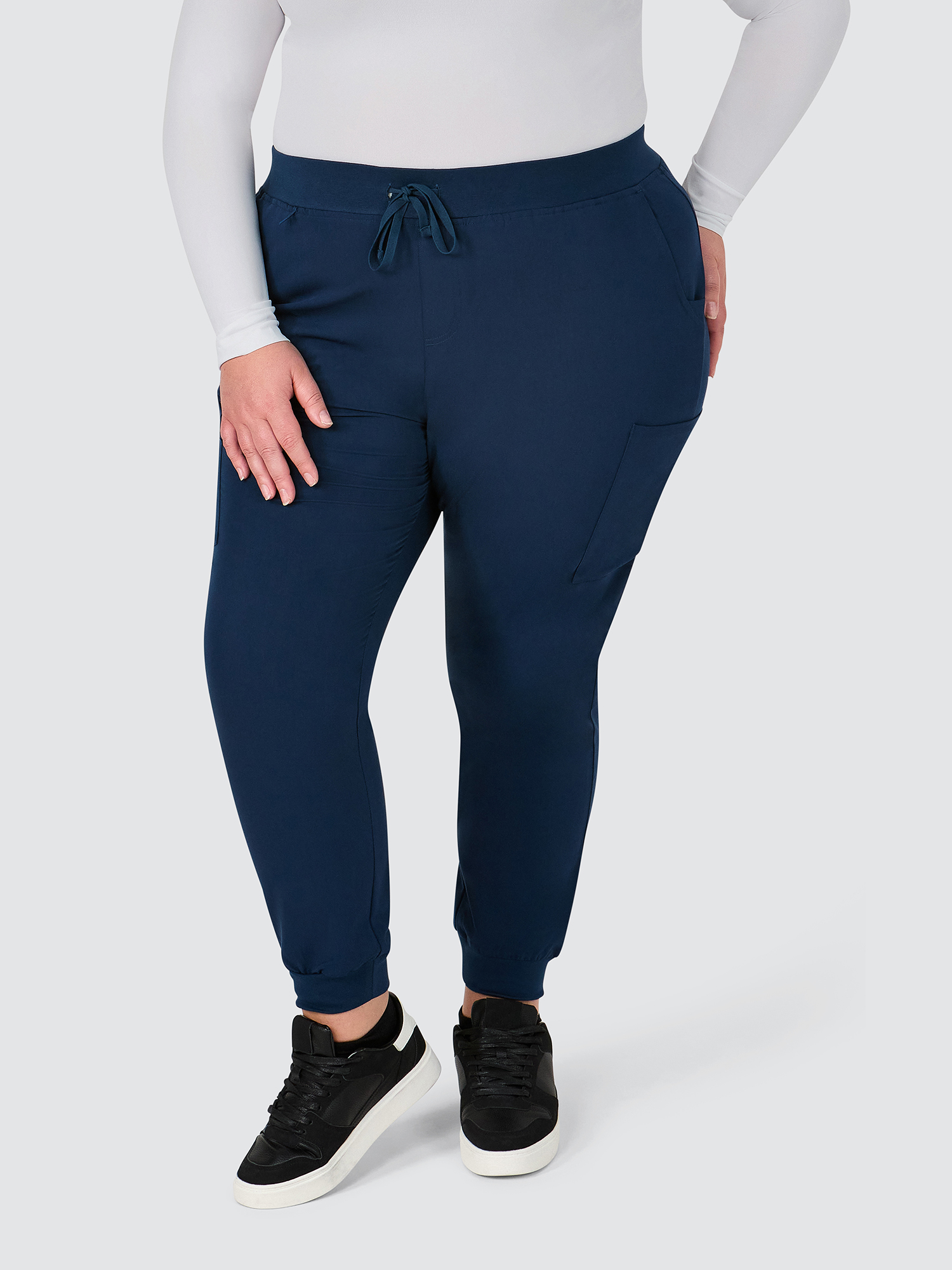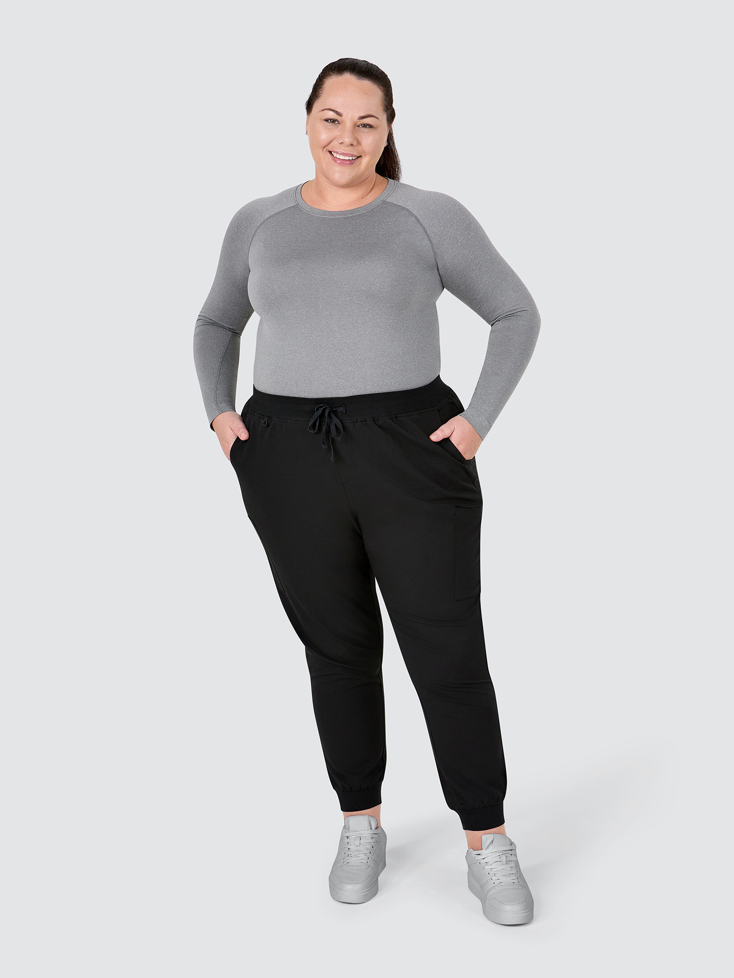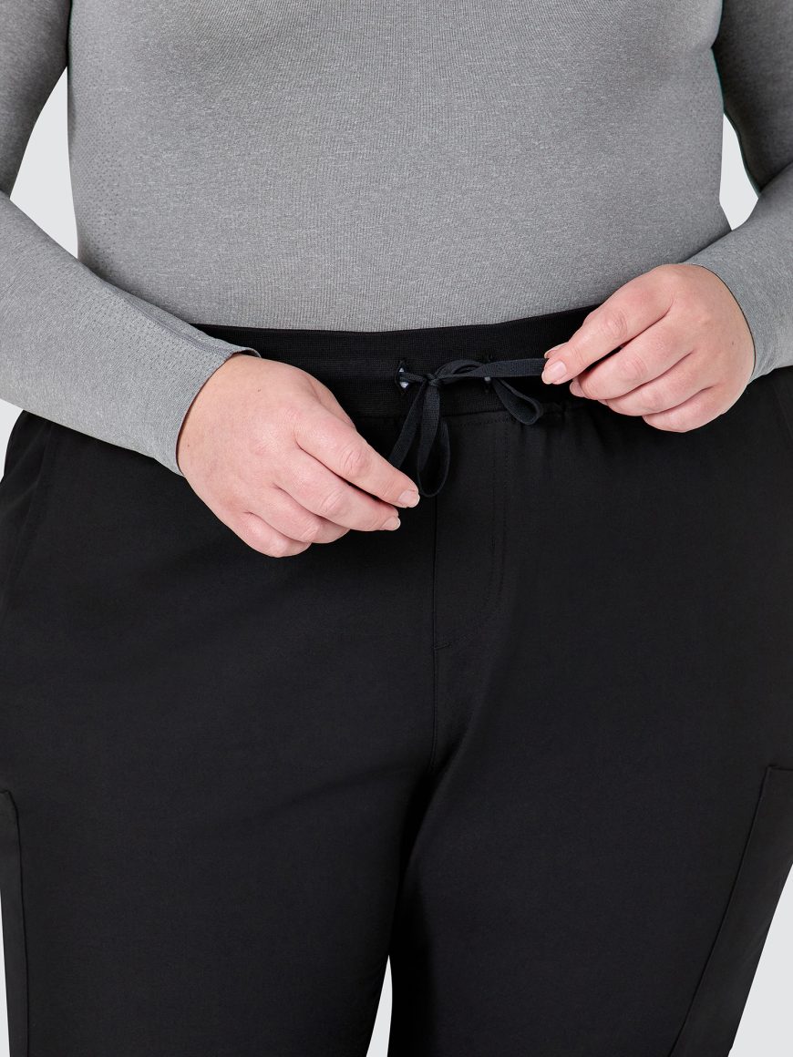 Female jogger with elasticated waist and drawstring.