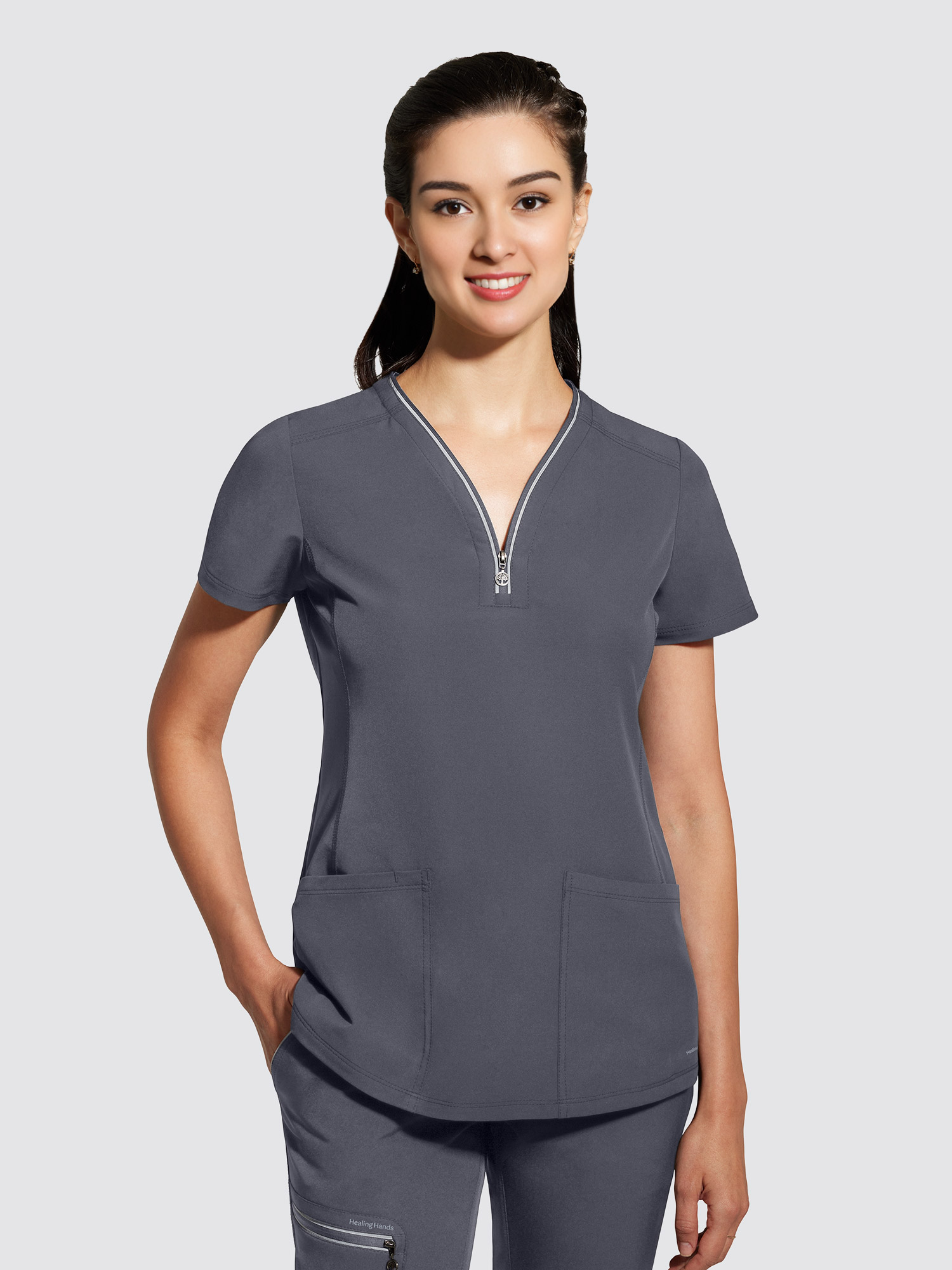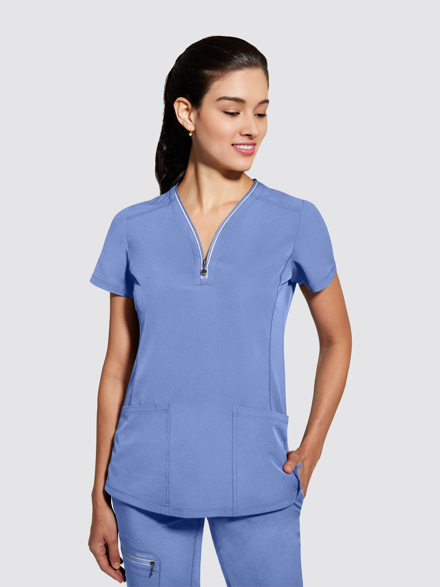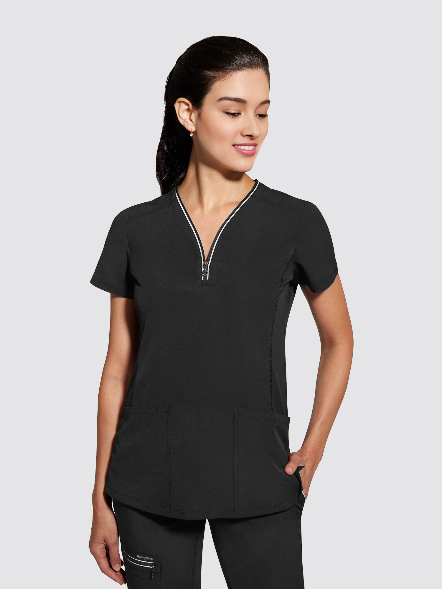 Healing Hands 360 Sonia Top - Make a statement with this versatile zip-neck top. The heavy stitching adds interest to the clean lines and tailored silhouette for a fresh take on your everyday uniform.