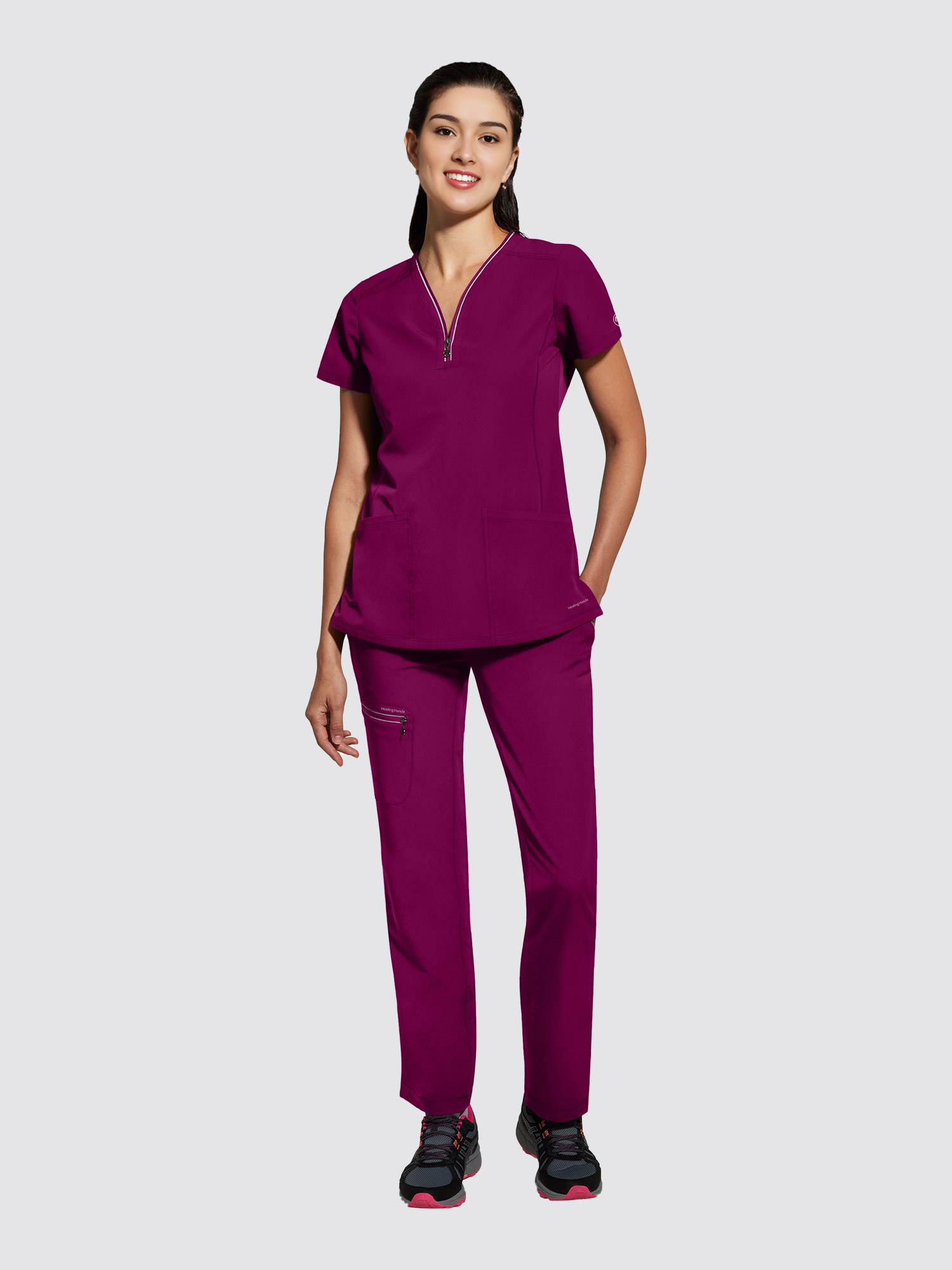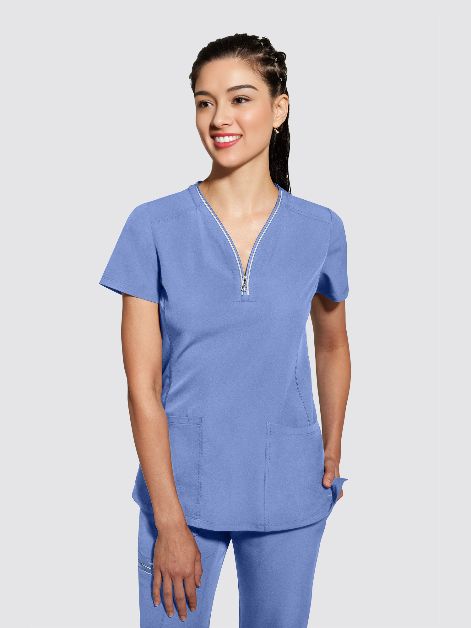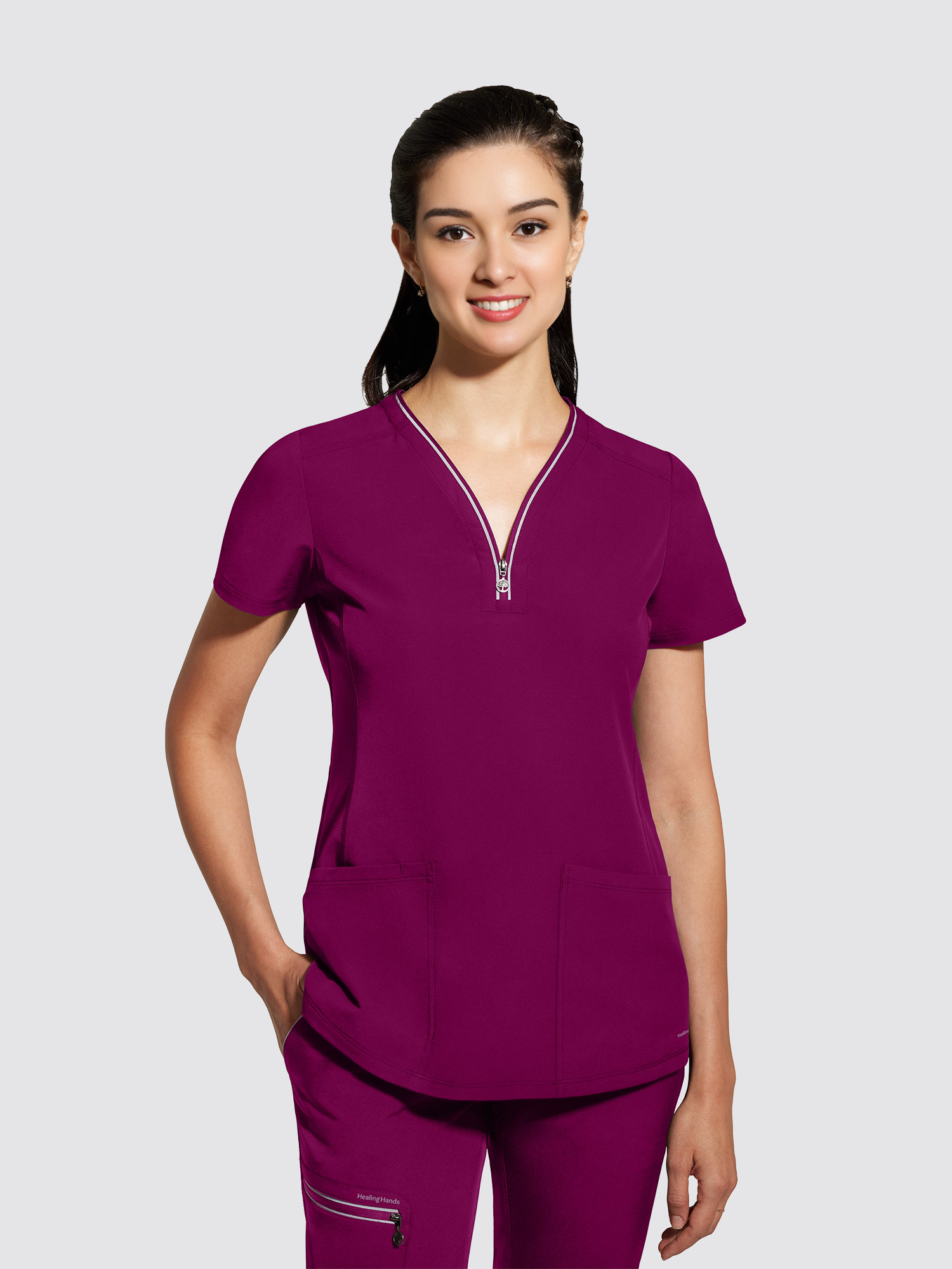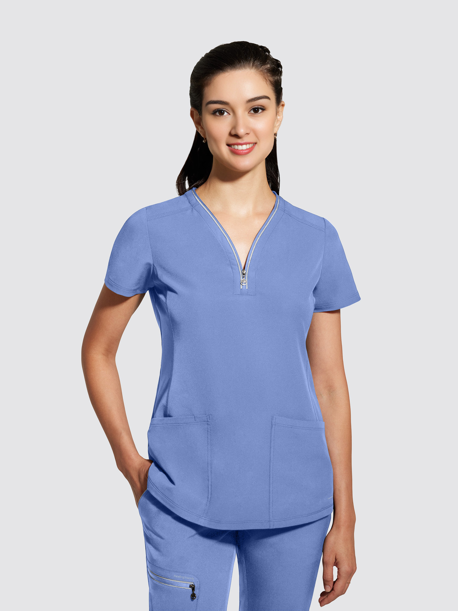 Healing Hands 360 Sonia Top - Make a statement with this versatile zip-neck top. The heavy stitching adds interest to the clean lines and tailored silhouette for a fresh take on your everyday uniform.