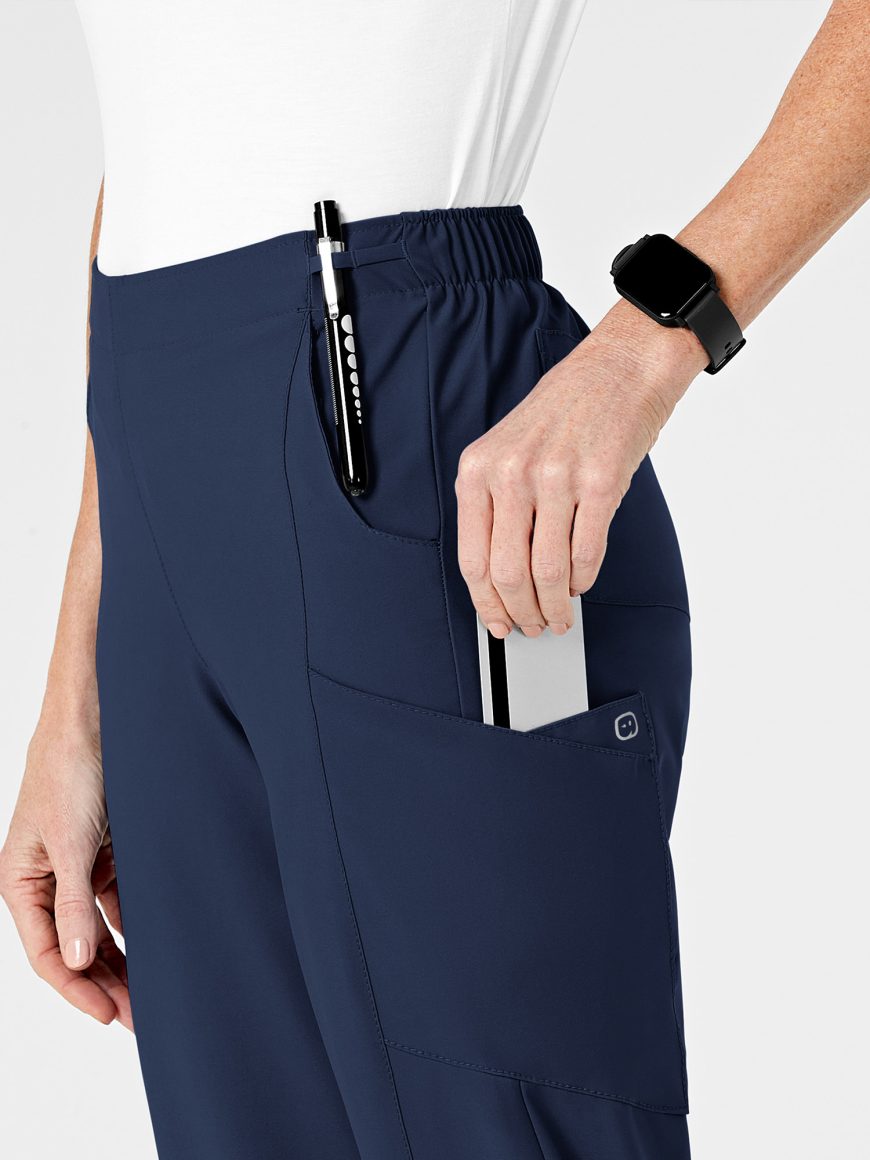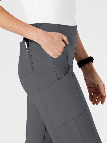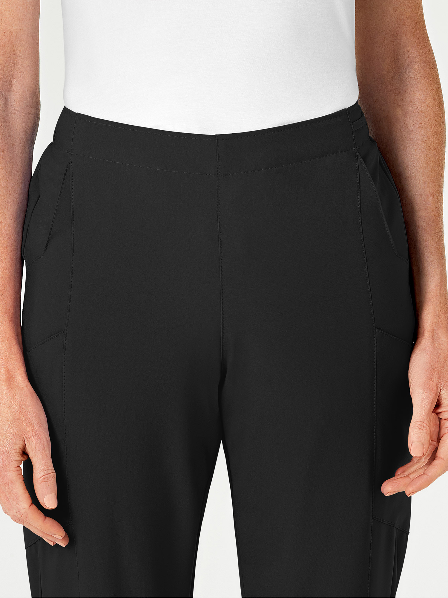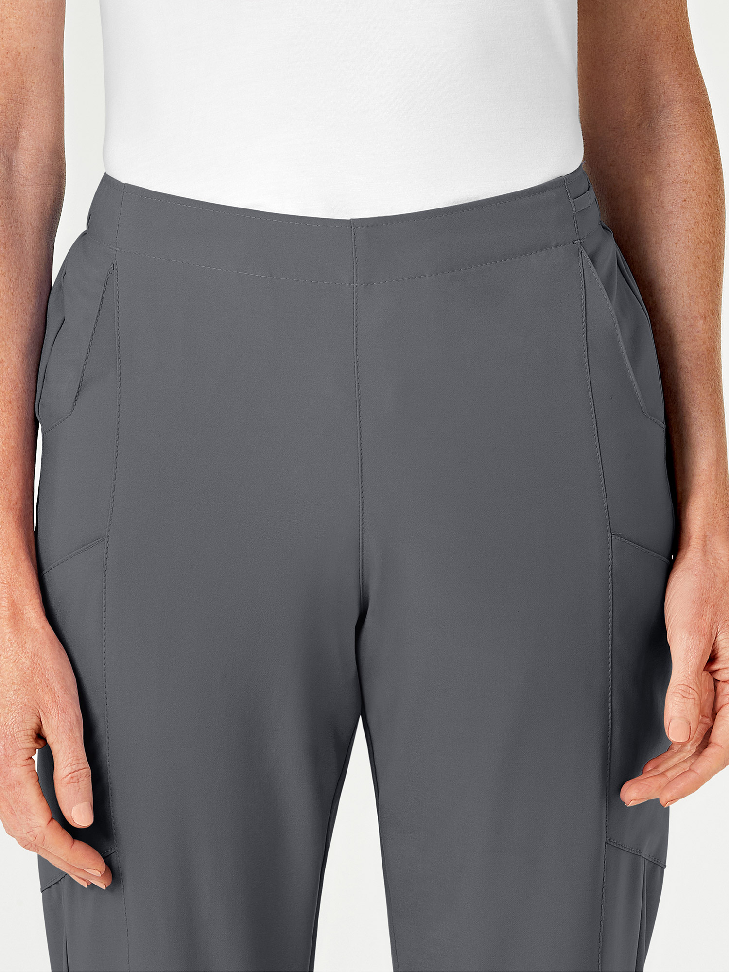 V-neck 4 pocket tunic top and hybrid waist cargo trousers.