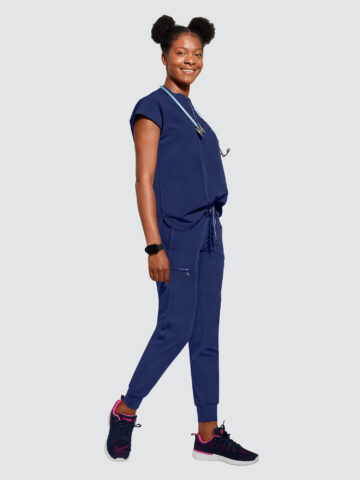 We offer three ranges of Healing Hands uniforms. The 360 Collection is our premium athleisure line, featuring jogger-style scrubs. The Works and Purple Label ranges offer more traditional silhouettes, incorporating spandex into the fabrics for added comfort and mobility.