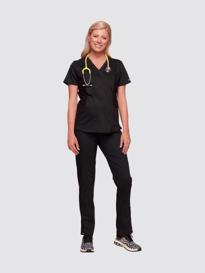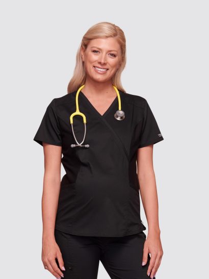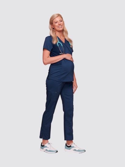 Crafted from soft, breathable fabrics, our maternity scrub tops and trousers offer stretch and durability to keep you comfortable during long shifts. Each maternity scrub top is designed with extra room, stretchy side panels and empire waistlines to reduce pressure on your bump while maintaining a polished look. Our full maternity scrub uniforms include adjustable waistbands and moisture-wicking materials to help you stay cool and confident.