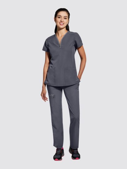 Our range includes a spectrum of colours – from calming blues and greens to bold shades and timeless neutrals. If you’re searching for a navy blue scrub top, you’ll find options in multiple fits and sizes, alongside vibrant tones for a touch of individuality.